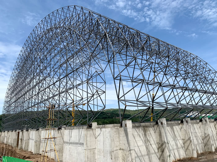 (2)网架加工前应对现场尺寸进行复测,确认无误后方可进行加工、安装;网架制作、运输、安装应遵守《空间网格结构技术规程》JGJ7-2010、《钢网架五大连池螺栓球节点》JG/T 10-2009、《钢网架五大连池螺栓球节点用高强度螺栓》 GB/T 16939-2016、《五大连池钢结构五大连池工程五大连池施工规范》 GB50755-2012、《五大连池钢结构五大连池工程施工质量验收标准》 GB50205-2020。